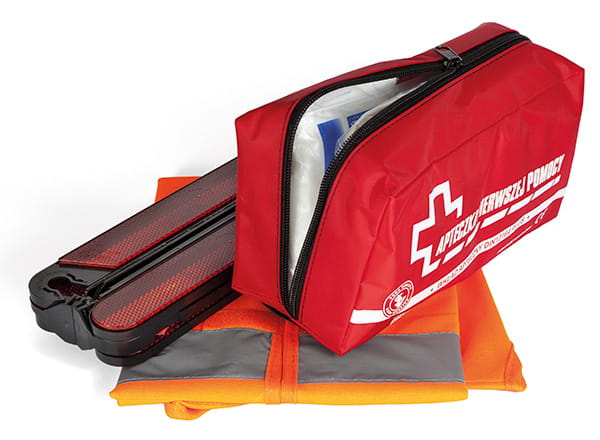 Apteczka samochodowa CERVA, w saszetce, z akcesoriami (+trójkąt i kamizelka)