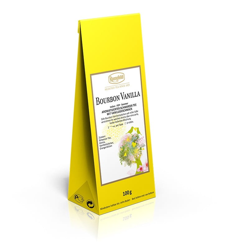Składniki: czarna herbata, aromat, kawałki wanilii, kwiat pomarańczy.