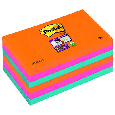 Bloczek samoprzylepny Postit® Super Sticky, iskrzące kolory, 6 sztuk po 90 kartek, 76x127 mm