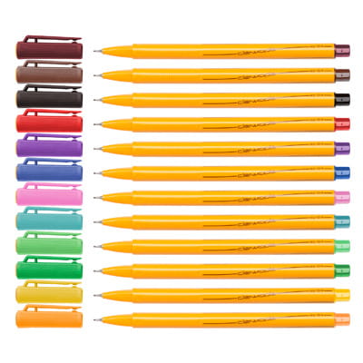 Cienkopis Rystor RC-04 - niezawodny, idealny do pisania i pracy z linijką. - Tusz na bazie wody, odporny na wysychanie (pozostawiony bez skuwki na kilka dni w temperaturze pokojowej - nie zaschnie. - Dostępny w 30 kolorach. Fibrowa końcówka oprawiona w metal. Wentylowana skuwka. Szerokość linii 0,4 mm. Korek w obudowie i nasadka określa kolor tuszu. - Nasadka posiada wygodny klip.