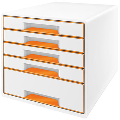 Pojemnik z 5 szufladami Leitz WOW, perłowy biały / pomarańczowy
