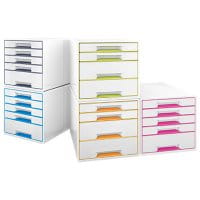 Przykuwające wzrok, najwyższej jakości pojemniki z szufladami WOW z niezwykłym i stylowym połączniem dwóch kolorów o błyszczącym wykończeniu. Wytrzymały pojemnik z szufladami doskonale pasuje do pozostałych produktów z kolekcji Leitz WOW.