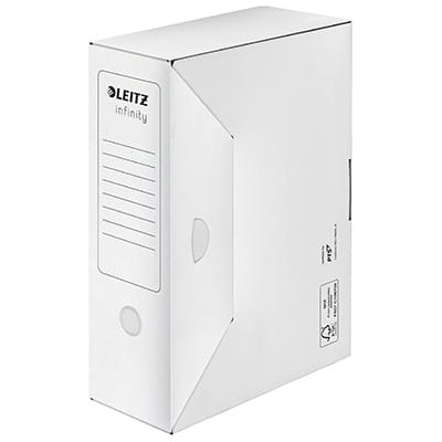 Produkty Leitz Infinity spełniają najwyższe normy jakościowe ISO (16245-A). Innowacyjna konstrukcja z automatycznie składanym dnem oszczędza czas i wysiłek. Pudła są gotowe do użycia w kilka sekund.