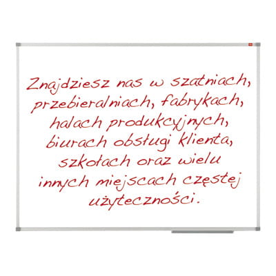 - klasyczne wzornictwo i solidna konstrukcja - powierzchnia suchościeralna, magnetyczna- solidna rama z anodowanego aluminium - zestaw do szybkiego montażu- półka na pisaki i gąbkę- wzornictwo i rozmiary dostosowane do potrzeb- gwarancja na powierzchnię tablicy 10 lat