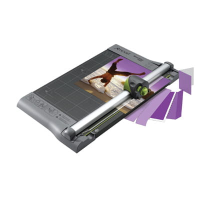 - przezroczysta linijka pomaga utrzymać papier podczas cięcia