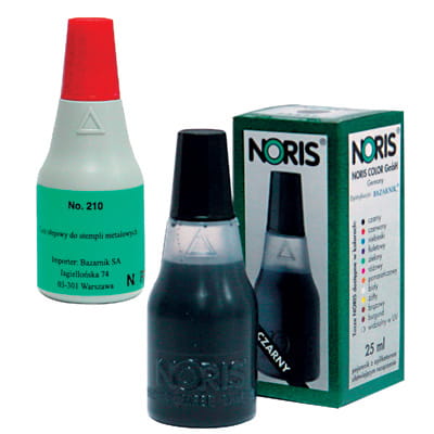- do stempli ręcznych i samotuszujących, z gumową i polimerową płytką stemplującą. - Dostępny w kolorach: czarnym, czerwonym, niebieskim, zielonym i fioletowym. - Buteleczka 25 ml z końcówką ułatwiającą nasączenie poduszek oraz nakrętką w kolorze tuszu.- jednostka sprzedaży 1 sztuka