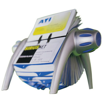 VISIFIX flip - wizytownik obrotowy. Może pomieścić nawet do 400 wizytówek. Przekładki od A do Z pozwalają na ich szybkie wyszukiwanie. Kolory: srebrny lub czarny