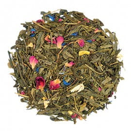 Składniki: zielona herbata Sencha, aromat, płatki róży, słonecznik, kwiaty bławatka