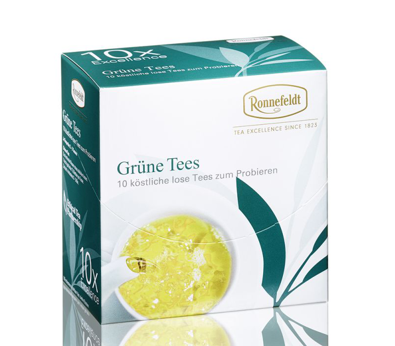 Zestaw 10 próbek zielonych liściastych herbat o gramaturze 3,9g - idealne do zaparzenia w dzbanku 0,4 - 0,5l.
